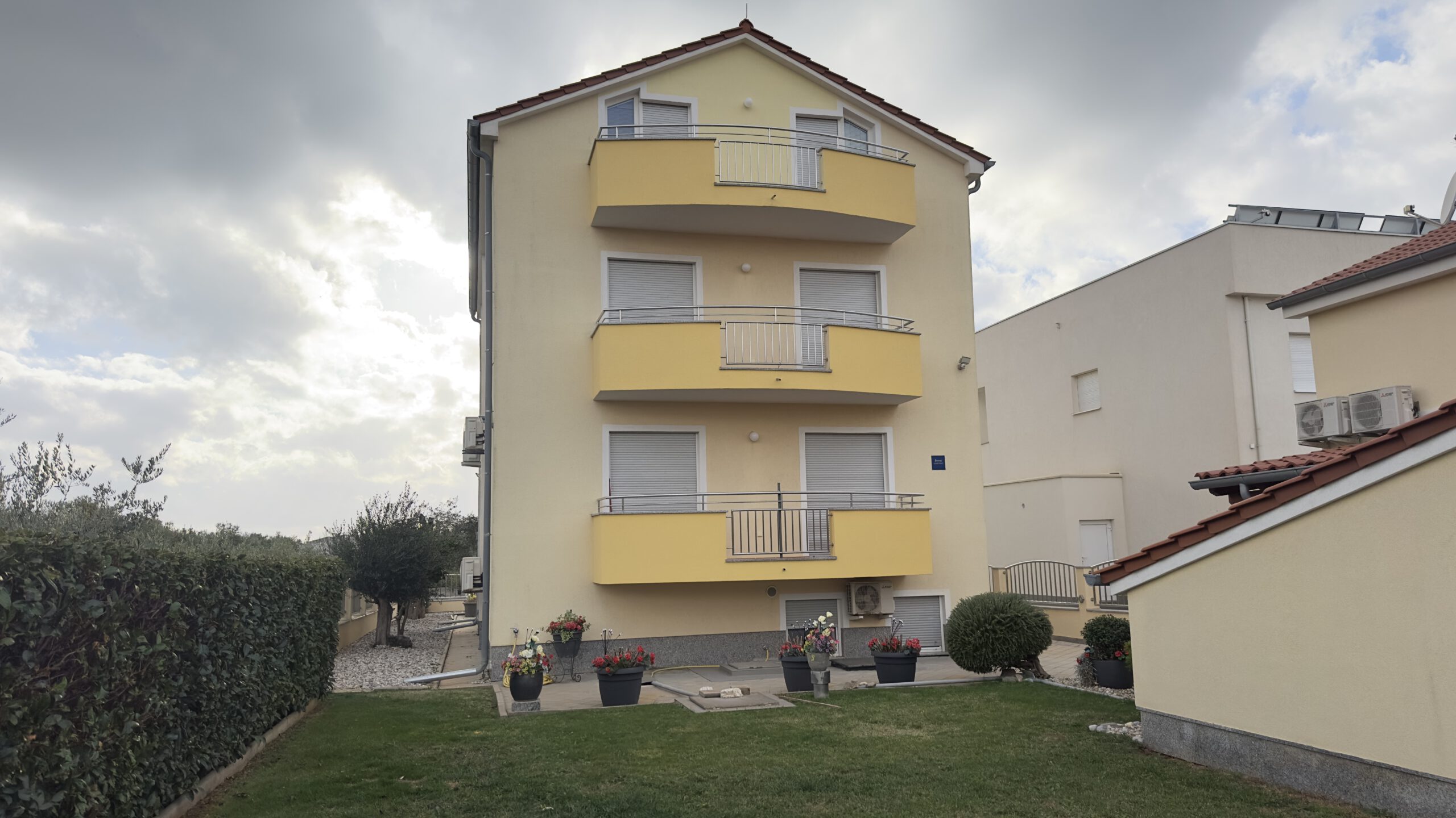 Auf 42 m² Wohnfläche bietet sie einen hellen Wohn- und Essbereich mit voll ausgestatteter Küche, ein Schlafzimmer und einen großen Balkon mit herrlichem Meerblick – perfekt zum Entspannen in der Sonne Dalmatiens.Zur Wohnung gehören außerdem ein PKW-Stellplatz sowie die Möglichkeit zur Gartennutzung.